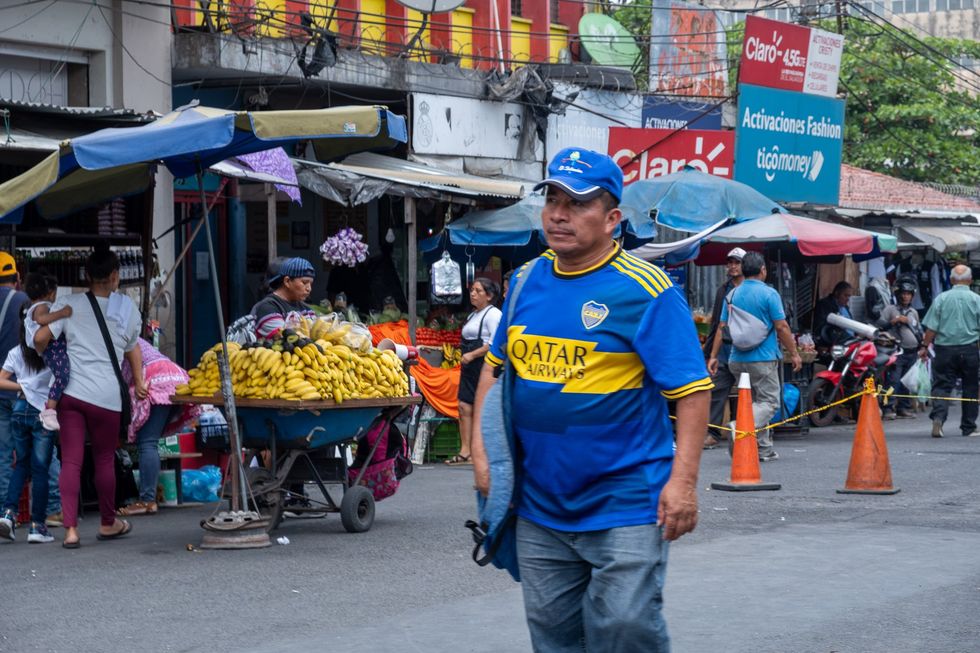 I begin to wander the market, that sprawling, pulsating heart of the city, where life spills out in every direction—vendors hawking fruits and vegetables, their colors vivid against the dusty backdrop, while others peddle meat of questionable origin, hanging in the tropical heat like a dare. Everywhere I turn, there are toys and trinkets, knockoff watches gleaming in the sunlight, and piles upon piles of clothing. But what catches the eye most are the countless shirts, posters, and hats emblazoned with the face of Bukele, the man who has become both the symbol and the savior of this nation’s rebirth.