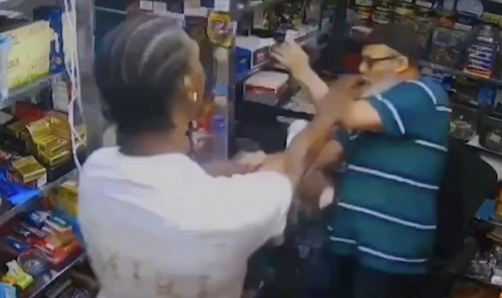 The mother then came back inside the deli with Austin Simon, who got behind the store's counter to confront Alba, the Daily News said.