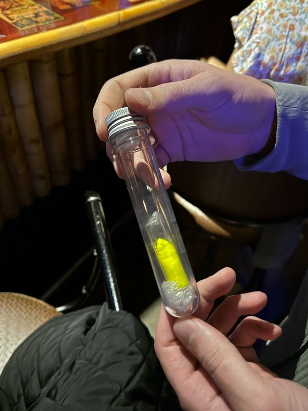 The hard tech renaissance of El Segundo. Purple Orchid, the bar of choice. A long, narrow, crowded shotgun space with vague Tiki aesthetics and a couple pool tables. 9 p.m. Thursday. One of the Gundo boys pulls a vial of plutonium out of his pocket. A couple fingers of yellow powder in a clear plastic tube.