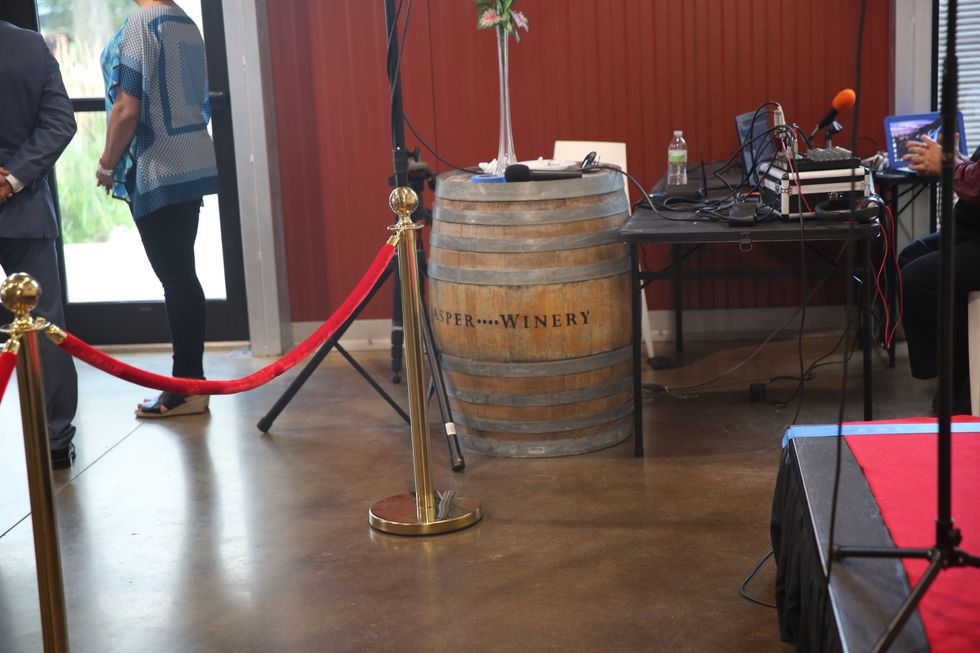 Jasper Winery was all glass and concrete and metal, so every sound made an echo. But the room was too narrow to accommodate light rigs and spotlights, and it had air conditioning, at least.