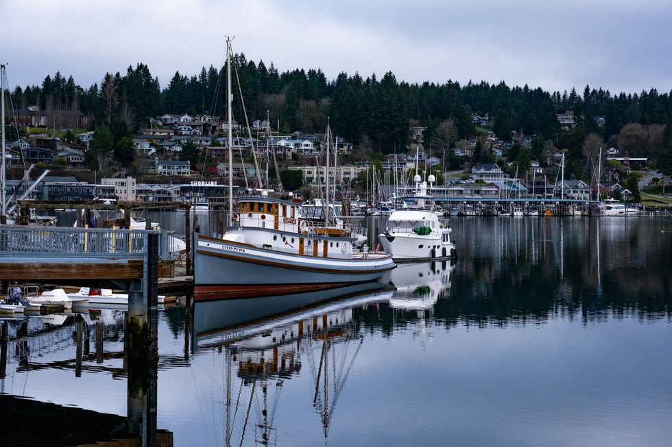 Chris Rufo is running late, so I decide to take a walk around the Gig Harbor pier. This achingly beautiful maritime village (pop. 12,000) is perched on Puget Sound. When the sun breaks through the fog, you can see the colossus of Mount Rainier reigning over the vista. The forest descends from the mountains to the water’s edge in waves of ancient green.